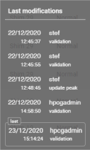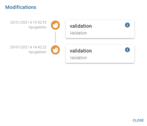 - Sur la gauche est affichée la date de la modification et l’opérateur ayant effectué cette modification