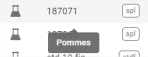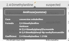 Au survole, le badge donne les informations sur la molécule somme associée, une bulle de détail apparait alors avec le nom, la formule et le coefficient :