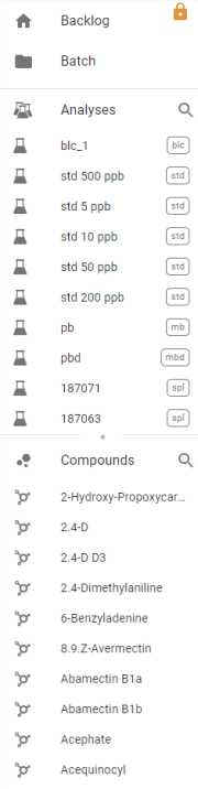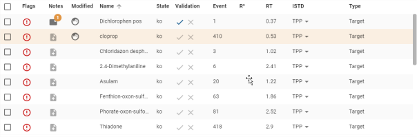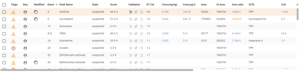 Les molécules de type ISTD sont présélectionnées afin de les ajouter directement au filtre. Elles sont représenté via le badge