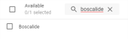 Au centre est présent 2 boutons permettant de faire passer une sélection d’une liste à une autre afin d’ajouter ou retirer des molécules du filtre :