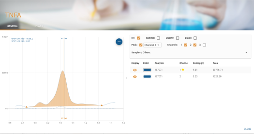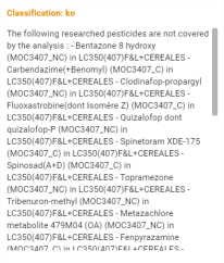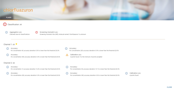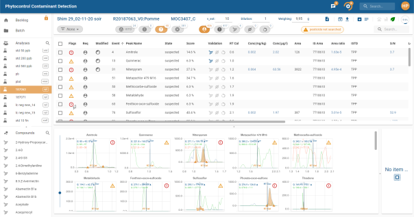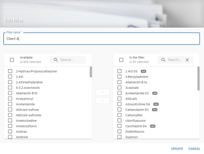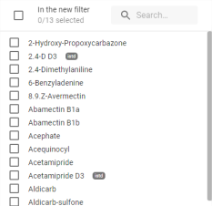 En survolant le nombre de molécules, une bulle d’information apparait avec la liste des molécules contenues dans le filtre :