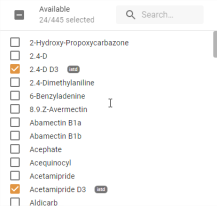 Une zone de recherche permet d’entrer le nom d’une molécule recherchée afin de construire le filtre plus facilement :