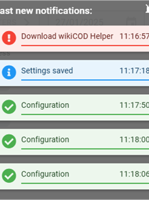 Les bulles d’information se ferment au bout de 4 secondes. Un barre de progression de la fermeture représentant ces 4 secondes est présente sur le bas de chaque message.