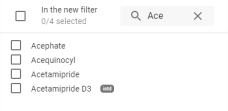 Par défaut, toutes les molécules de type ISTD sont présélectionnées afin de les ajouter directement au filtre. Elles sont représenté via le badge