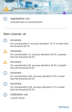 Certaines valeurs du tableau peuvent être affichées en couleur. Cela veut dire que de l’information supplémentaire est visible. La couleur définit le niveau du message (Info, Warning, Error). En survolant la valeur, une bulle de détail s’affiche :