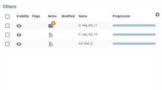 Certaines tables ont une colonne « Note » qui est représentée par un pictogramme expliquant que des notes ont été écrites pour l’objet de la ligne (avec le nombre de notes):