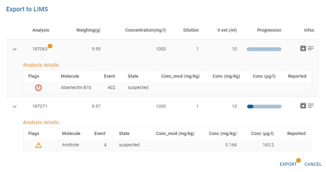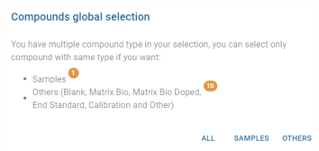 ℹ Lors d’une sélection multiple où les analyses sont de type mixtes, une fenêtre de sélection plus fine s’affiche :