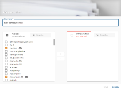 Il est obligatoire d’ajouter des molécules dans cette liste pour créer un filtre.