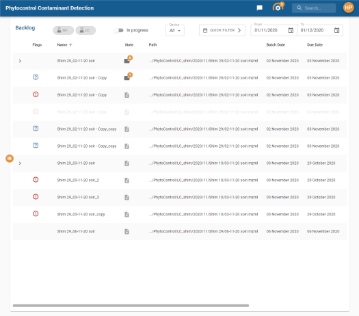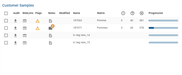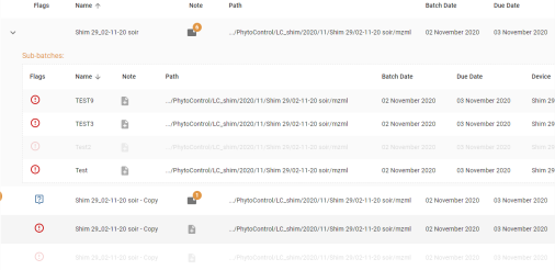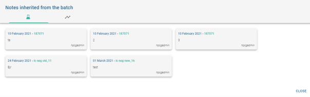 . Le nombre de notes affiché sur le pictogramme d’une note de Batch est la somme des notes du batch + le nombre de note des analyses et des calibrations héritant de ce batch.