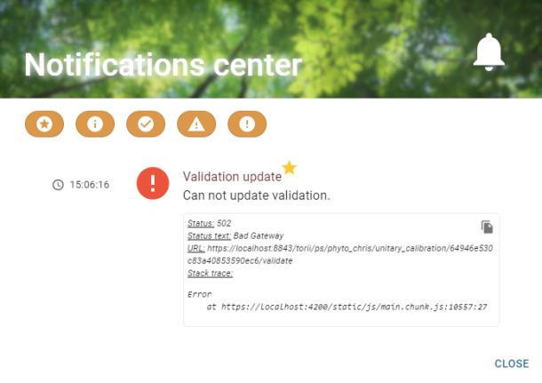 Vous pouvez essayer de recharger la page courante et voir si le problème persiste. Si tel est le cas, vous pouvez essayer de revenir à l'accueil puis recommencer à naviguer jusqu'à l'endroit problématique et voir si le problème persiste. Si aucune des deux étapes précédentes n'ont fonctionnées, vous pouvez faire parvenir le message d'erreur aux équipes du support en cliquant sur le bouton de copie du message d'erreur dans le presse-papier. Puis le faire parvenir au support technique via votre moyen habituel.
